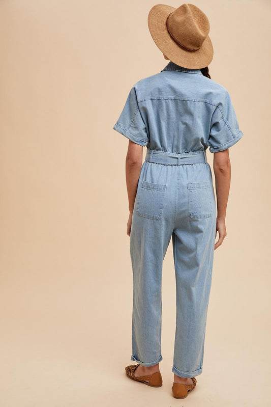 Denim Collared Jumpsuit