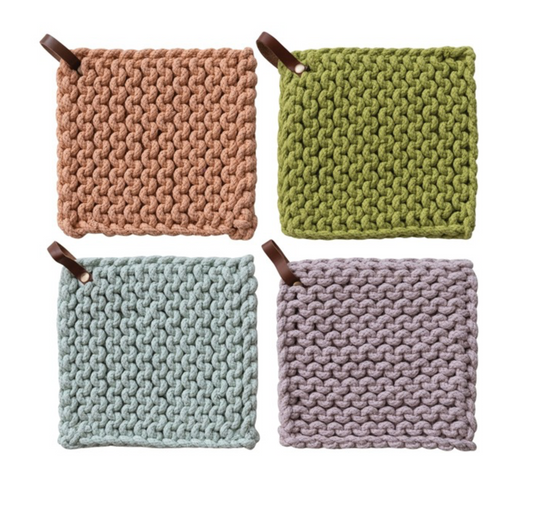 Cotton Crochet Pot Holder w/Leather Loop (Hazel Mazel)