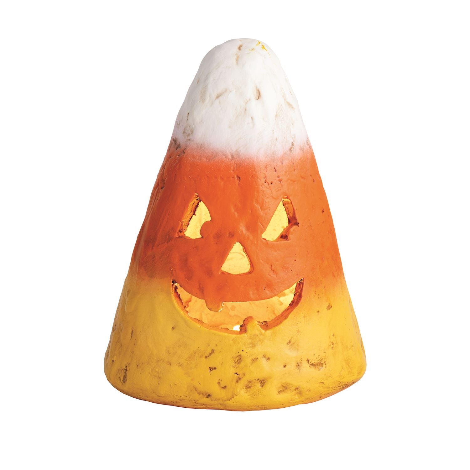 Papier-mâché luminary comes with flameless tea light candle. Battery included.