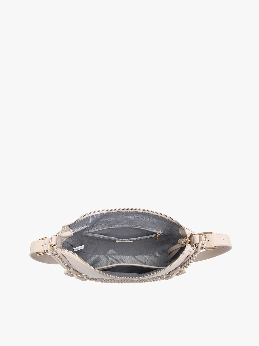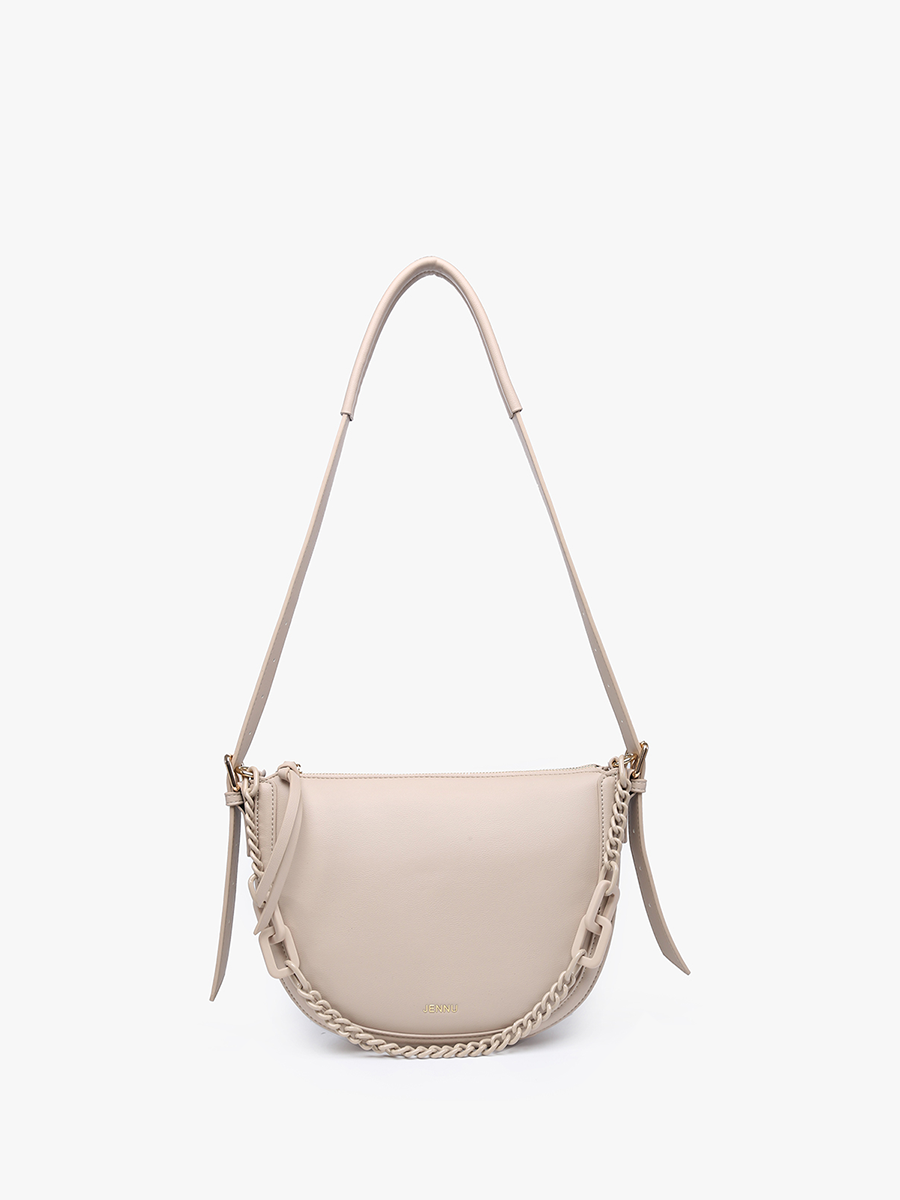 Item Details: -Style: Saddle bag/crossbody -Material: Vegan leather -Features a removable chain strap and adjustable/removable crossbody strap for versatility -Secured with a zipper closure for convenience -Includes a back zip pocket for easy access to essentials -Interior features both slip and zip pockets for organization -Accented with gold-tone hardware for an elegant touch Dimensions: -Length: 11 inches -Height: 8.5 inches -Depth: 3 inches -Drop: 19 inches (adjustable/removable crossbody strap) The Delhi Chain Saddle Bag offers a stylish and functional accessory for your everyday needs.